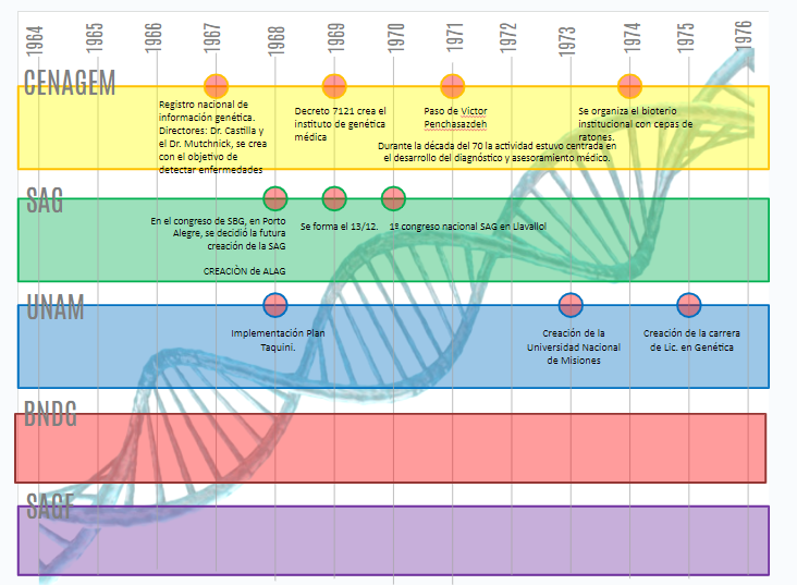 En este contexto, se analizó el desarrollo de instituciones argentinas como el CENAGEM, la Sociedad Argentina de Genética, la Asociación Latinoamericana de Genética, la creación de la primera carrera universitaria de Licenciatura en Genética en la Universidad Nacional de Misiones, el Banco Nacional de Datos Genéticos y, finalmente, la Sociedad Argentina de Genética Forense.