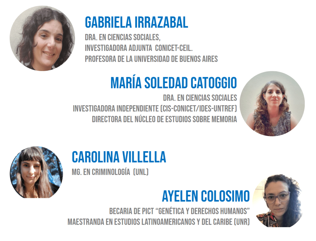 La Dra. Gabriela Irrazabal presentó los objetivos y alcances del proyecto que co-dirige junto con la Dra. Catoggio, las preguntas que guían las investigaciones, las relaciones entre genética y derechos humanos, y expuso el relevamiento documental realizado por el equipo, basado en 1014 fuentes primarias.